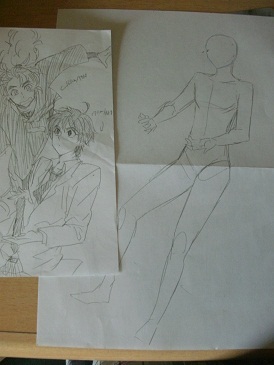 ちなみに左は一番初めに描いた表紙の絵のラフです