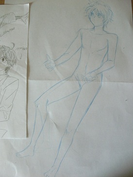 顔、髪、胸板、腹筋 すべて書きます。まあ要は裸です。